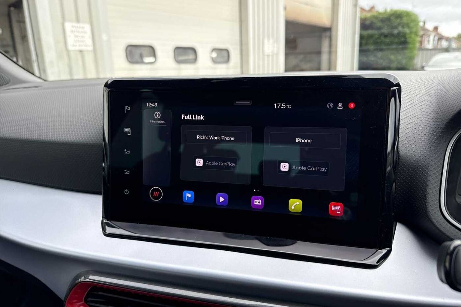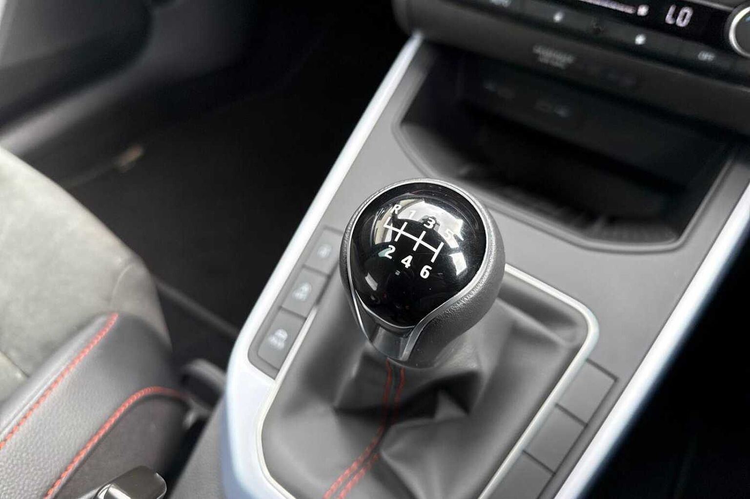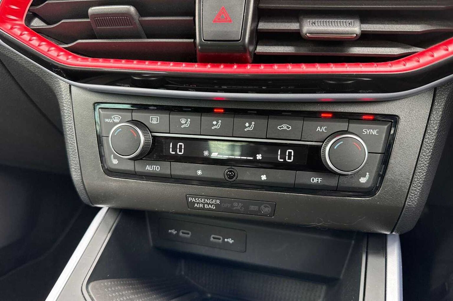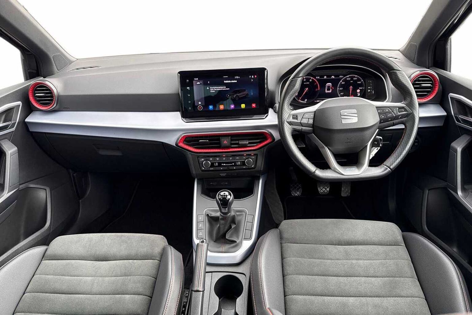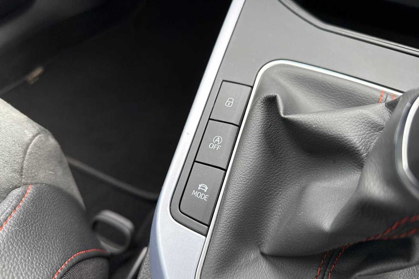 - Perforated flat bottomed leather steering wheel/gear knob/handbrake with red stitching and FR logo