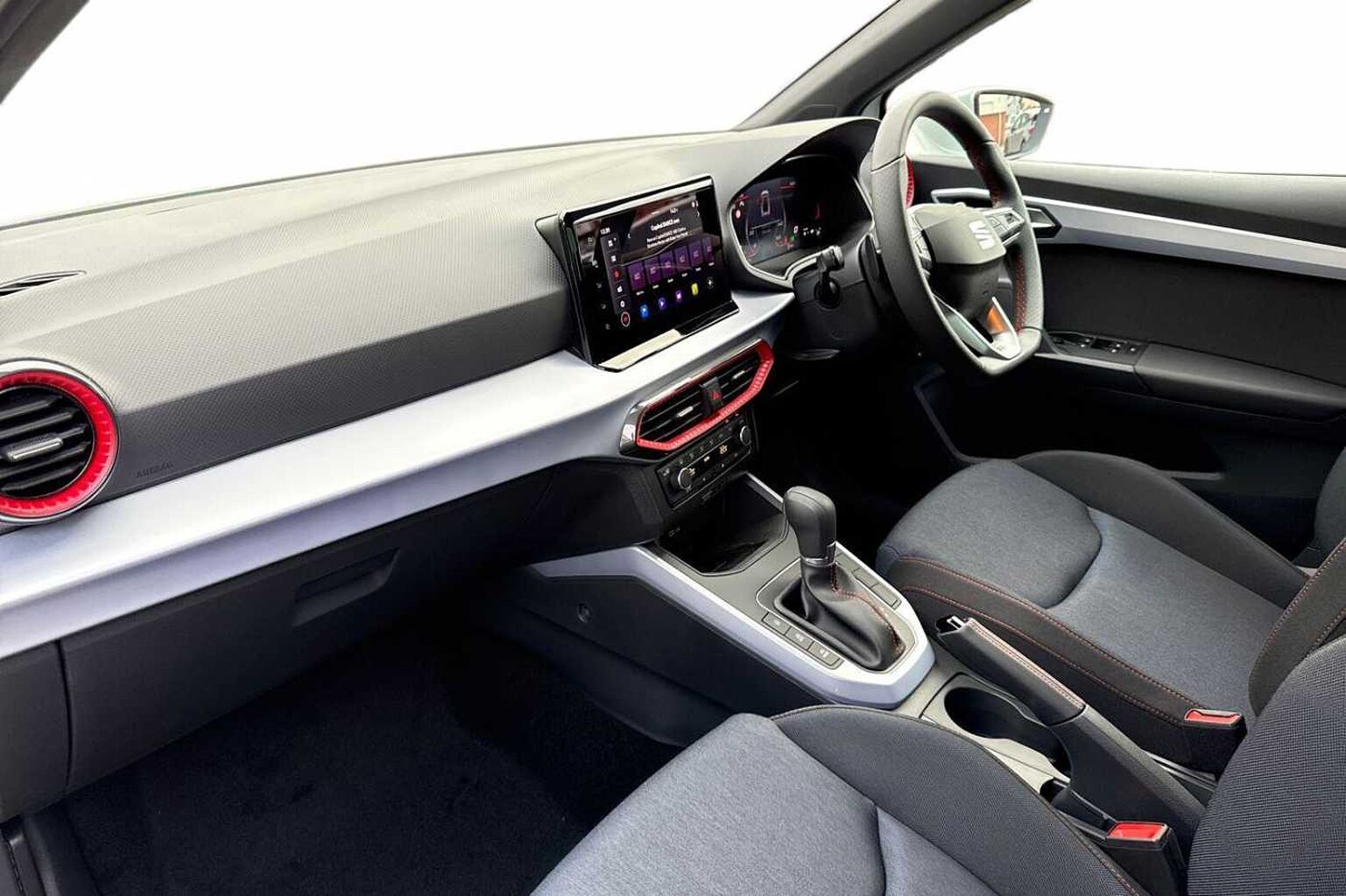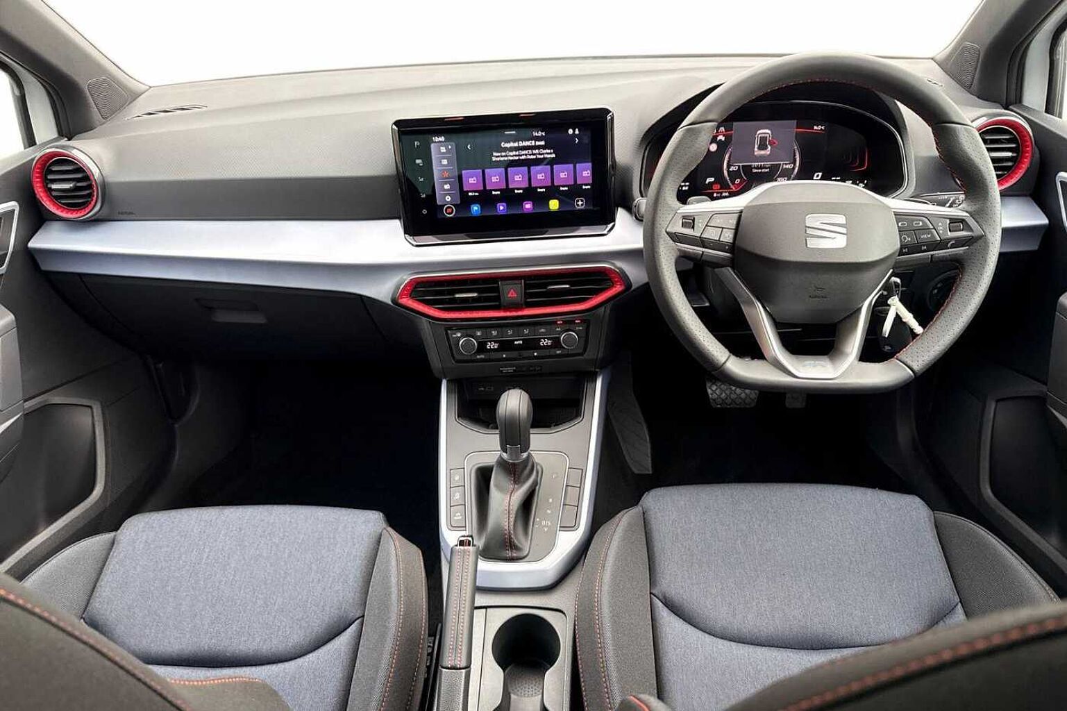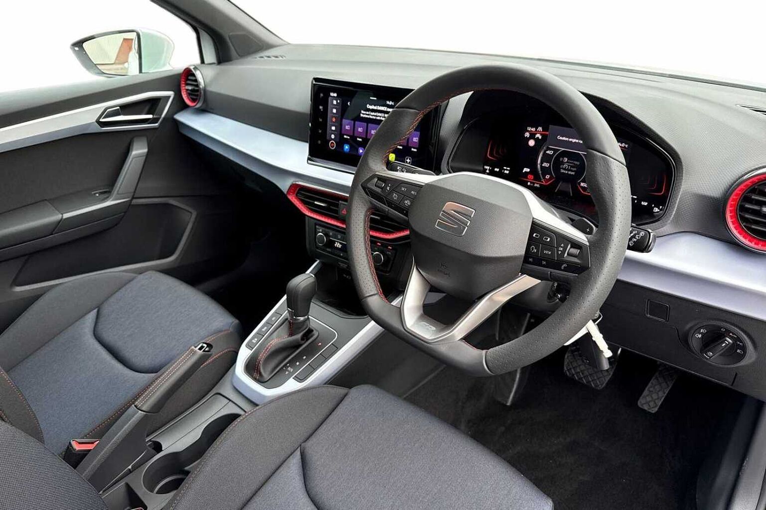 - Perforated Leather Flat-Bottomed Steering Wheel with Red Stitching and FR Logo with Leather Gear Knob and Handbrake