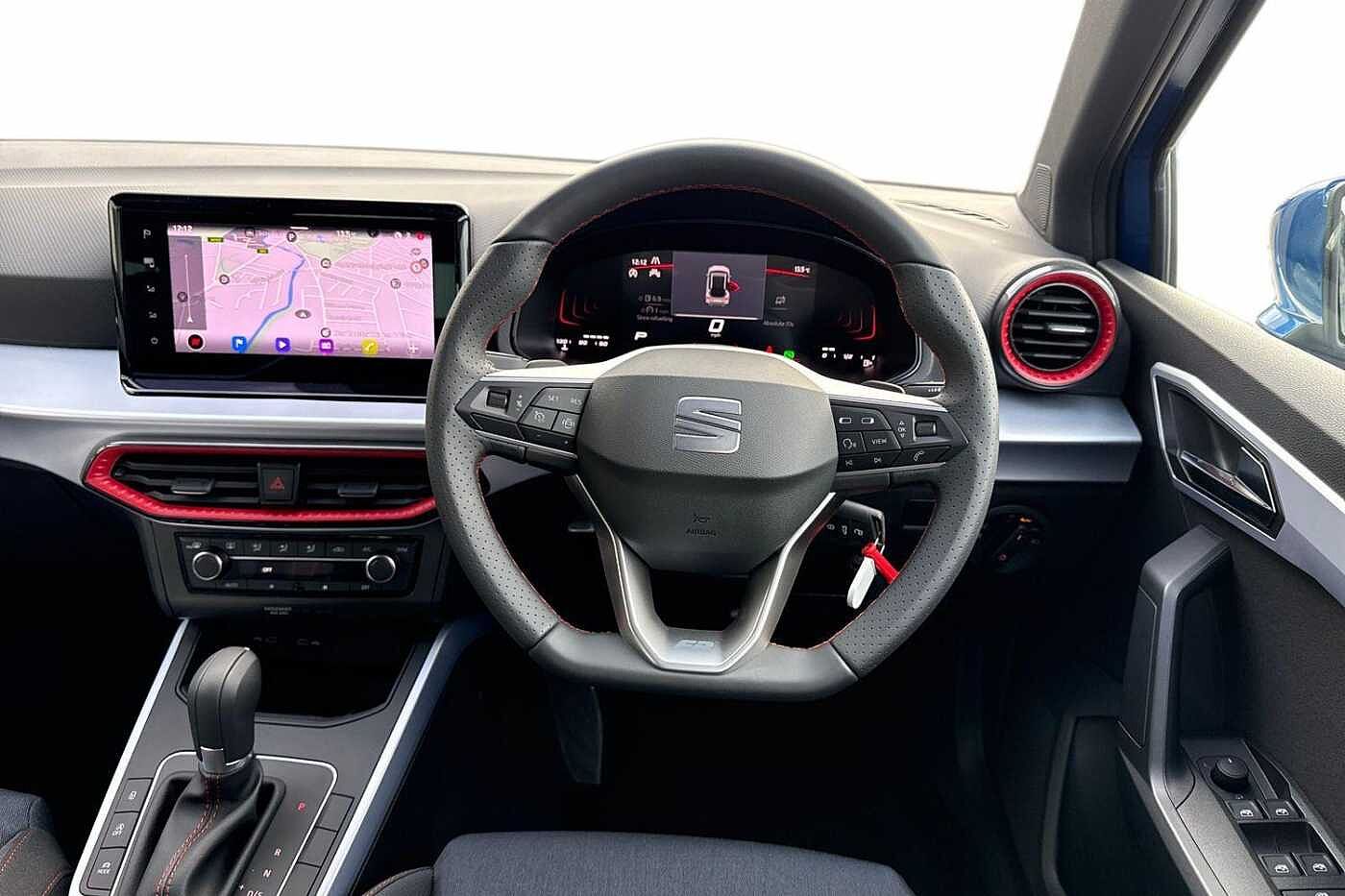 - Perforated Leather Flat-Bottomed Steering Wheel with Red Stitching and FR Logo with Leather Gear Knob and Handbrake