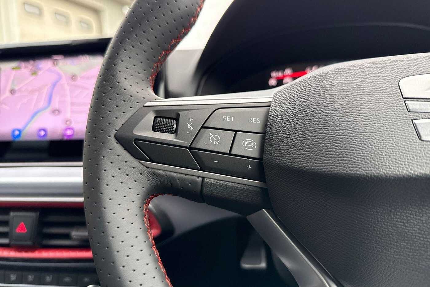 - Perforated Leather Flat-Bottomed Steering Wheel with Red Stitching and FR Logo with Leather Gear Knob and Handbrake