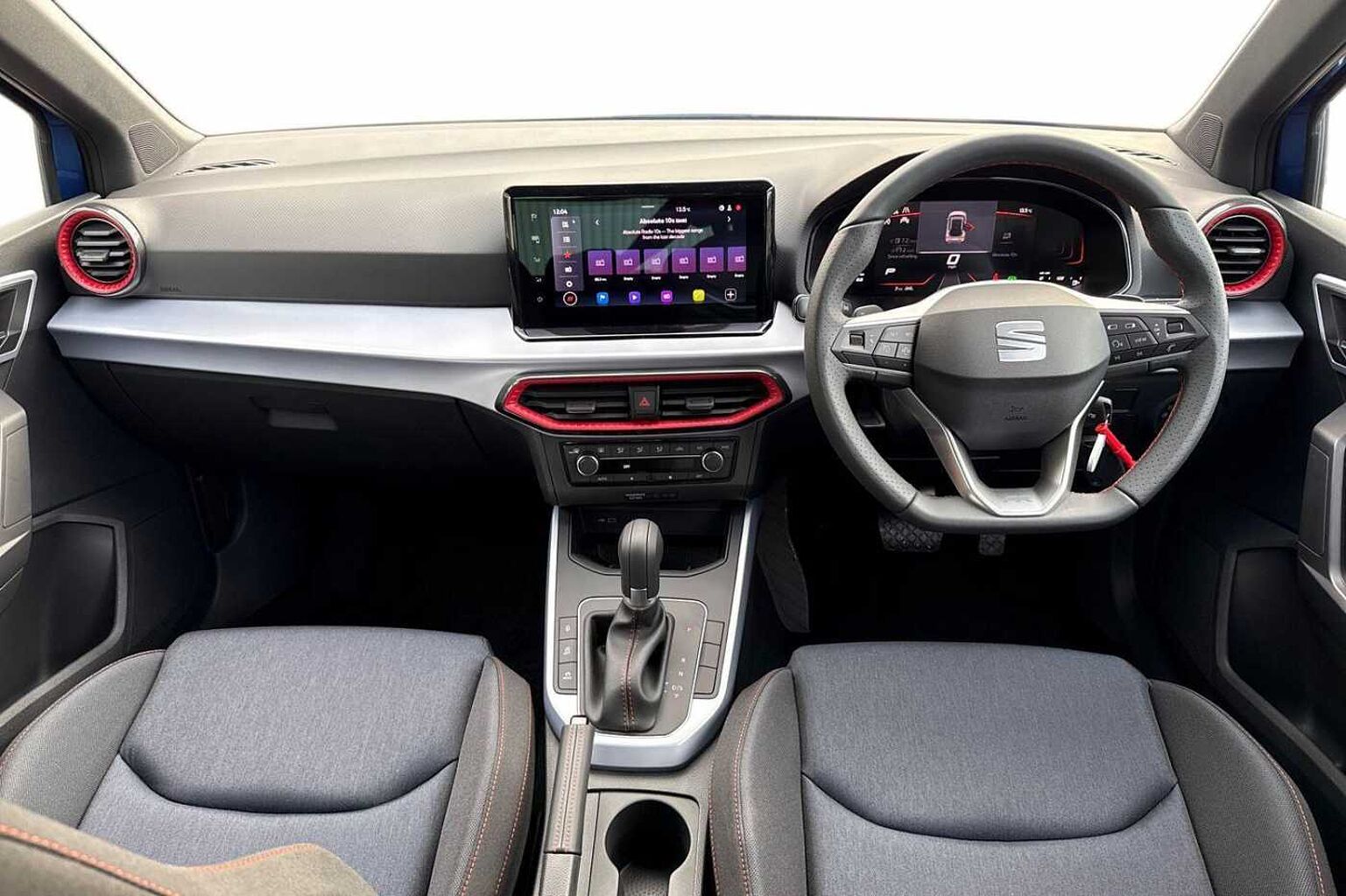 - Perforated Leather Flat-Bottomed Steering Wheel with Red Stitching and FR Logo with Leather Gear Knob and Handbrake