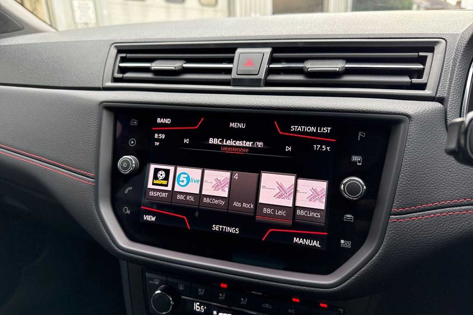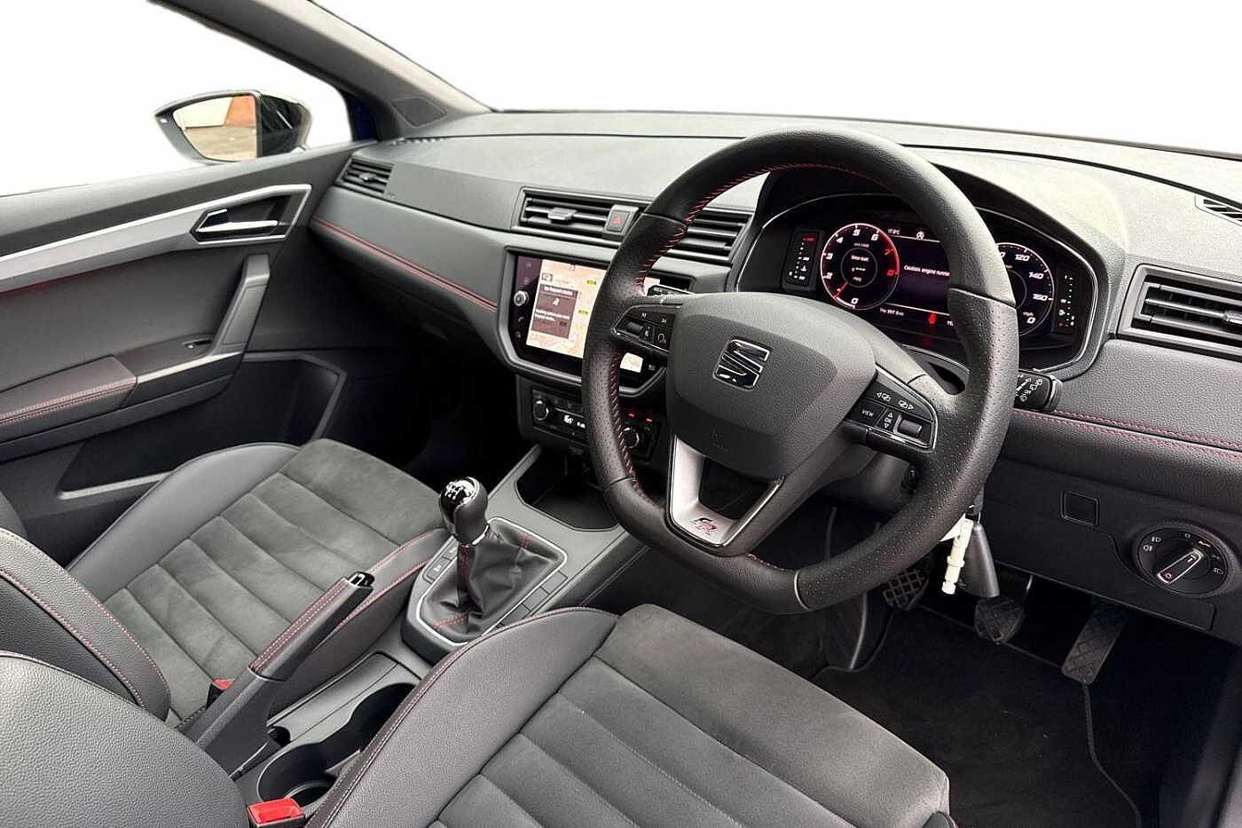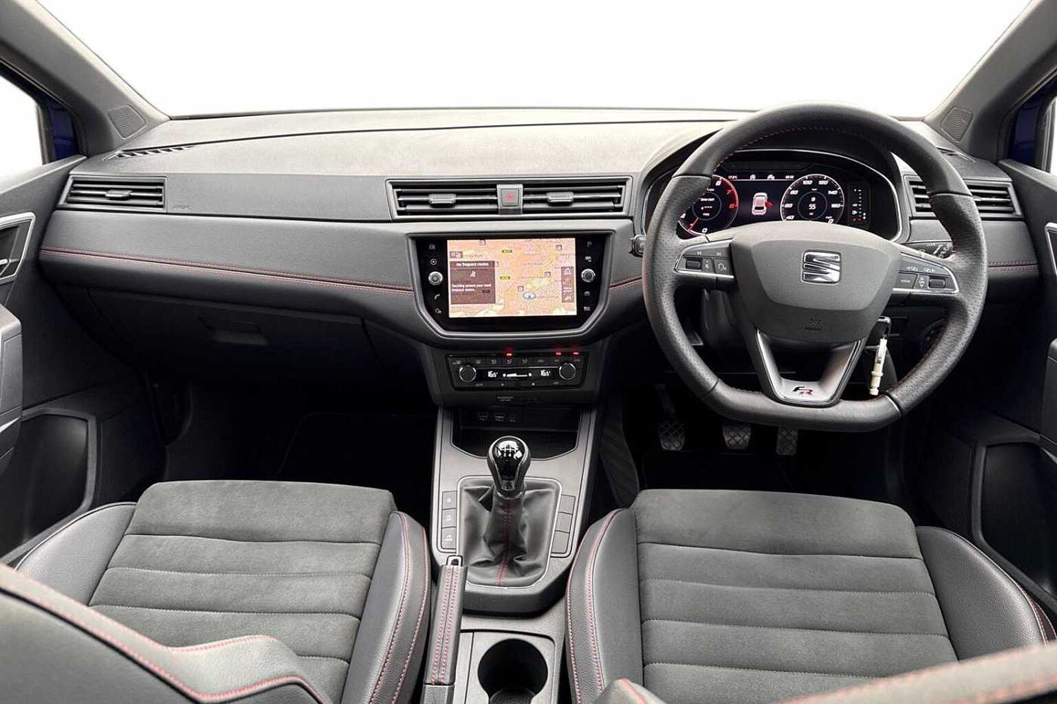- Perforated Leather Flat-Bottomed Steering Wheel with Red Stitching and FR Logo with Leather Gear Knob