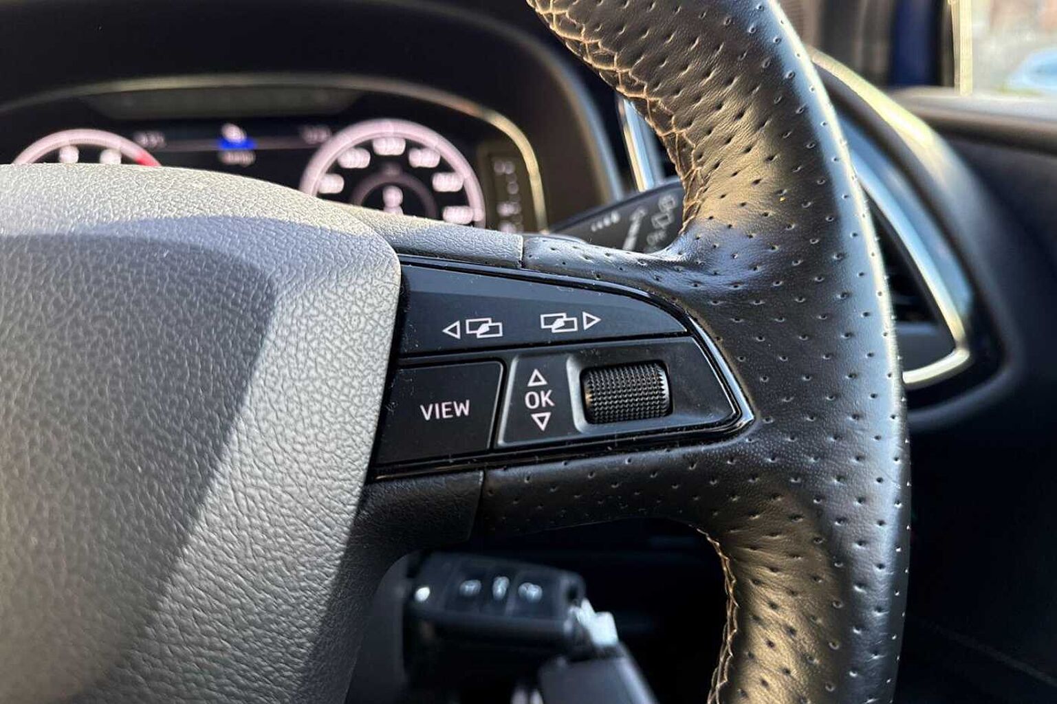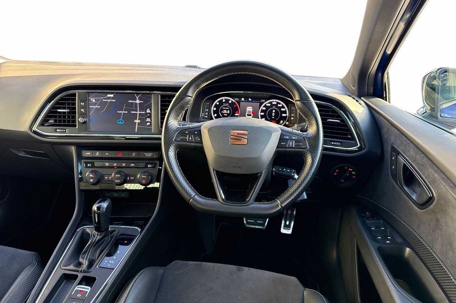 - Flat Bottomed-Perforated Leather Steering Wheel with White Stitching and CUPRA Logo